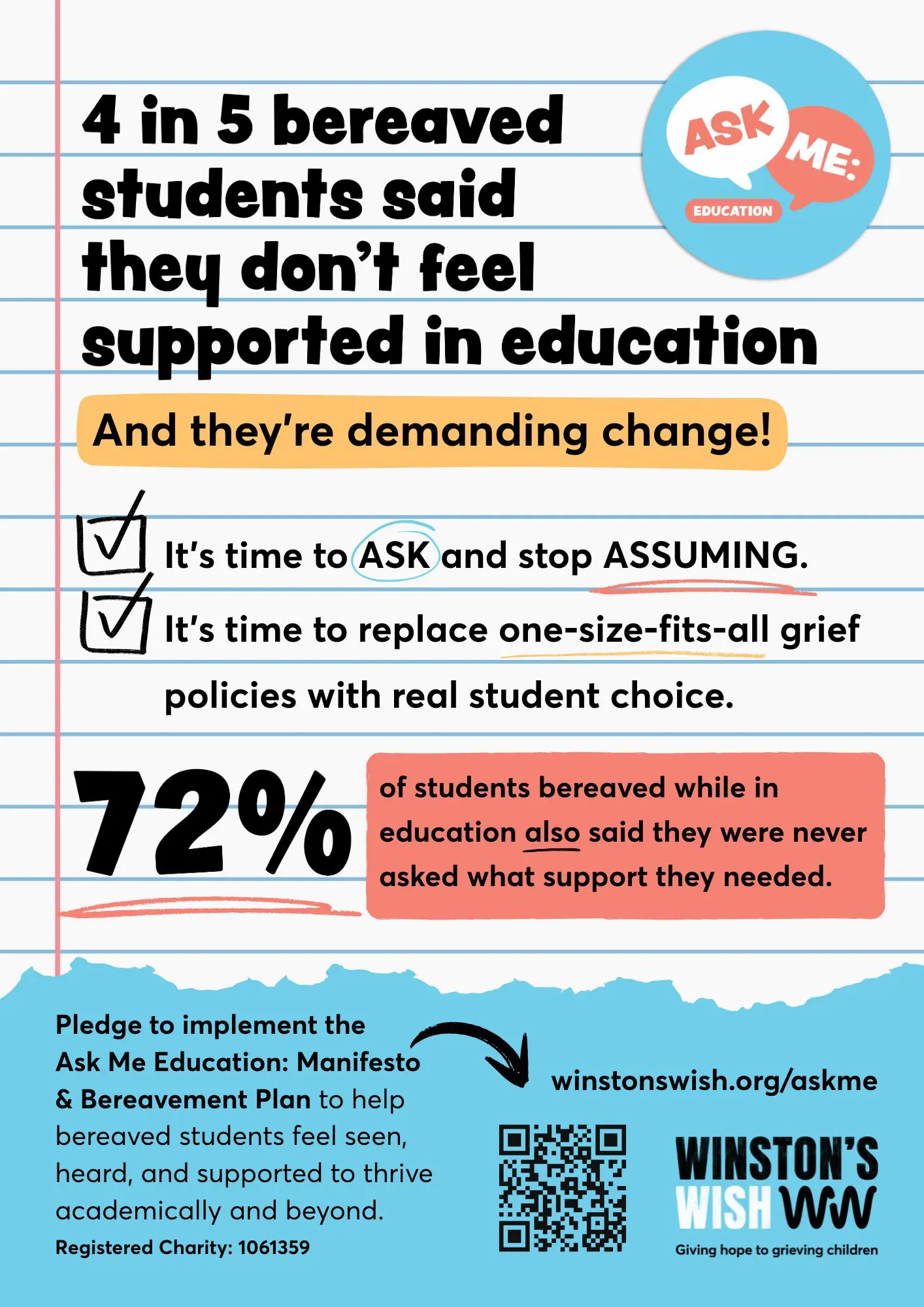 I’ve signed and implemented the Ask Me: Education Manifesto and Bereavement Plans. Will you join the movement? winstonswish.org/askme