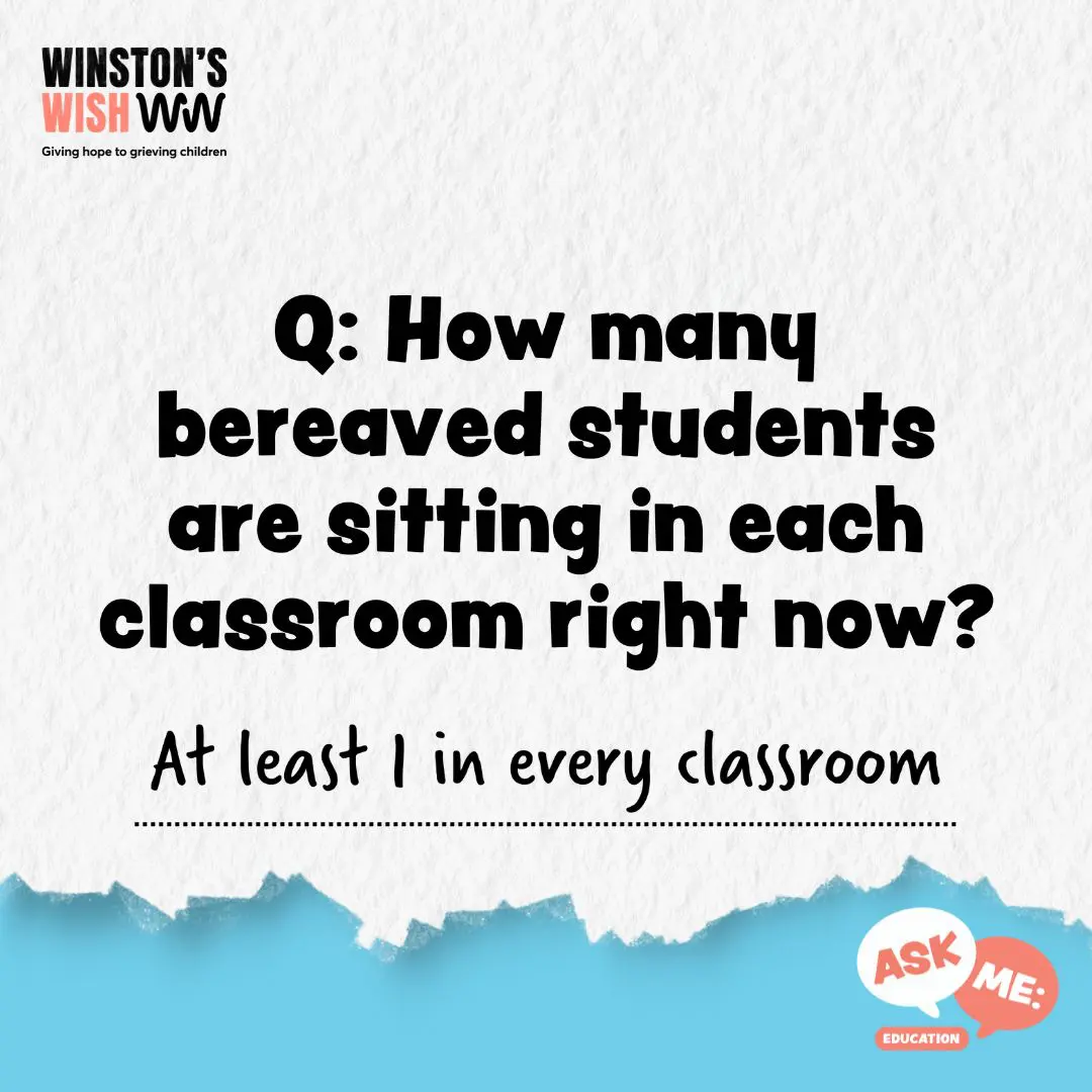 Want to know more about Winston’s Wish and the Ask Me: Education campaign or got a question about implementing it? Send us an email at education@winstonswish.org or call 01242 515 157. If you’re looking for guidance and support for a bereaved child or young person you can speak to a bereavement specialist by calling 08088 020 021, email ask@winstonswish.org, use our live chat or text or WhatsApp us on 07418 341 800.